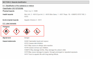 Based on the inherent properties (characteristics) of a waste, the waste may be categorized as hazardous regardless of the composition or method of generation. This information can commonly be found in Section 2 of Safety Data Sheets (SDS) labelled “Hazard Identification”.