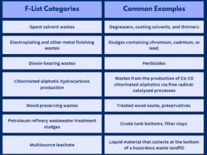 If your company produces certain types of wastes from specific processes (F-List), they may be hazardous: