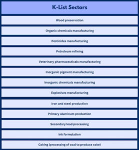 If your company is one of the following sectors (K-List), certain waste streams are considered hazardous: